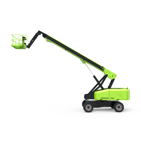 ZT26J teleskopisk bomlift har en arbeidshøyde på 28,2 m og rekkevidde på 23,31 m. Dobbel kapasitet på 300 kg (ubegrenset)/454 kg (begrenset). Firehjulsdrift og oscillerende akslingssystem forbedrer terrengegenskapene betraktelig. Med en stigningsgrad på 45 % kan den tilpasses alle typer jobber med ekstrem tilkomst. Vedlikeholdsfritt bomsystem reduserer eierkostnadene maksimalt. Utsvingbar motor er designet for enkelt vedlikehold. Standardplattformen på 2,44 x 0,91 m gir romslig og komfortabel arbeidsplass. Standard jib øker manøvrerbarheten og gir et større bevegelsesområde.